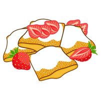Fried dough with a sprinkle of powdered sugar and a side of sliced strawberries