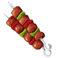 Grilled skewers of succulent beef, tender chicken, and roasted vegetables served plain with house sauces or side dishes. Kissed by draconic fire for an infernal flavor.