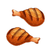A magnificent grilled poultry leg with crispy, charred skin and succulent, juicy meat inside. Shaped and positioned to resemble a creepy creature's leg complete with talons reaching upward.